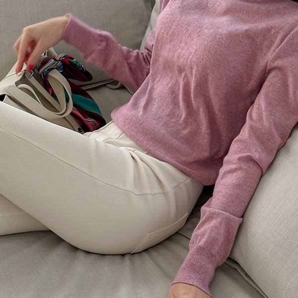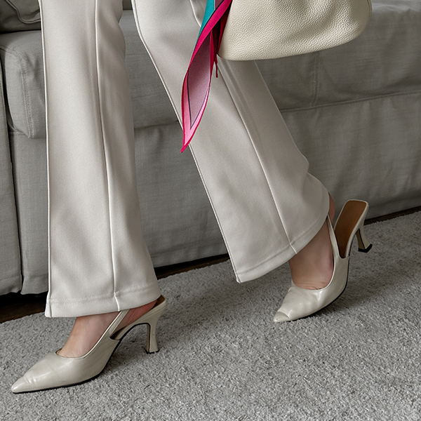 細かく美しい 弾力 ピンタック バンディング ブーツカット パンツ (起毛裏地)
