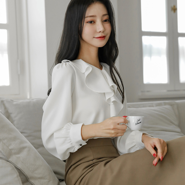 ロマンチック フルライン ラッフル ポイント ブラウス