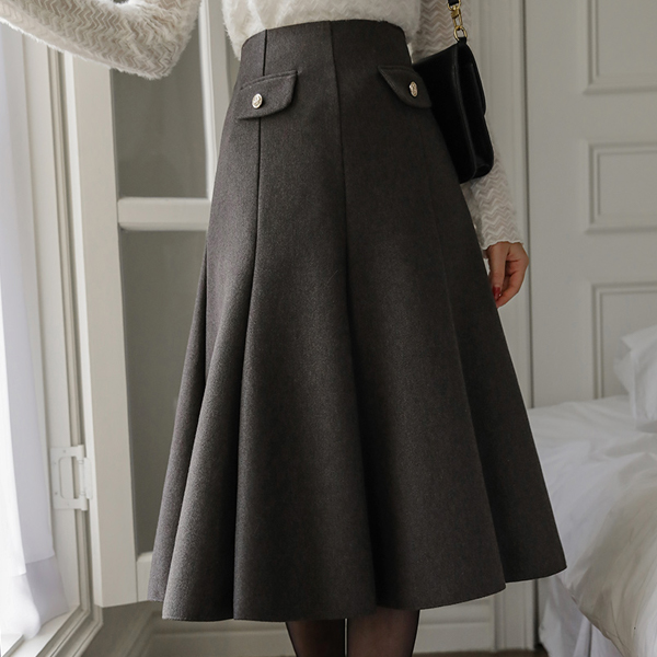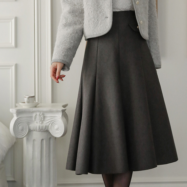 ポケット ポイント 切開 後面バンド フレア スカート (起毛裏地)