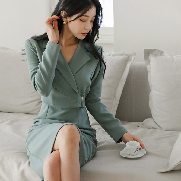 エレガンス カラー ラップ バックル ポイント ワンピース