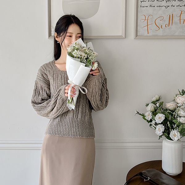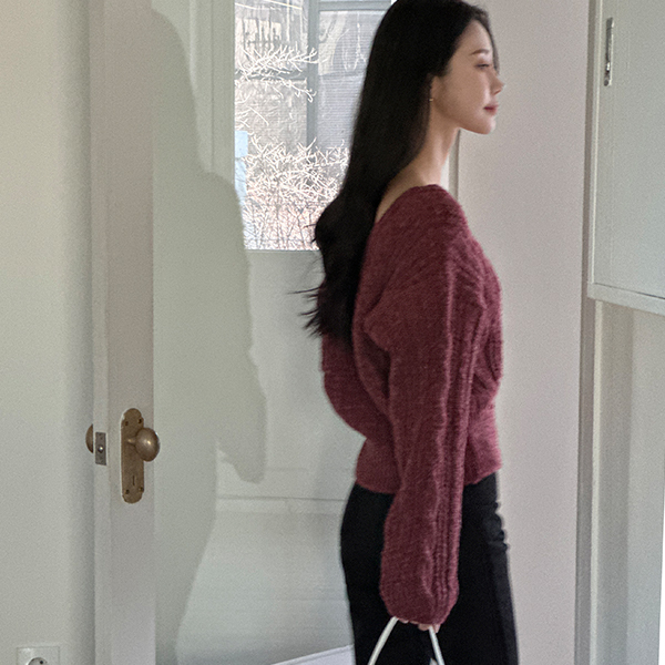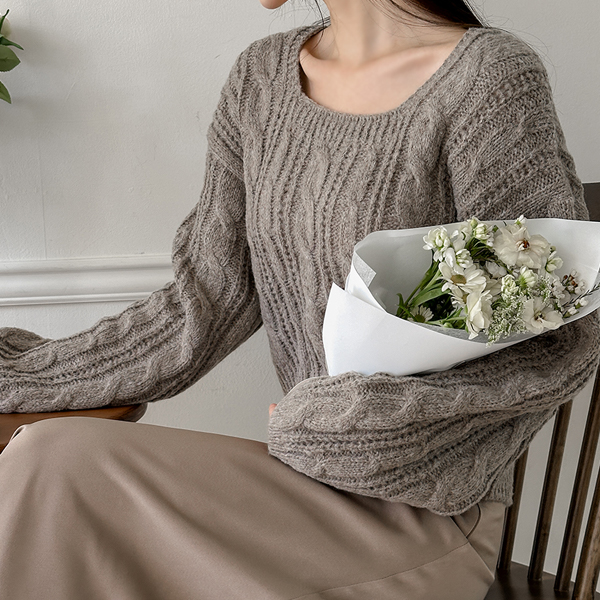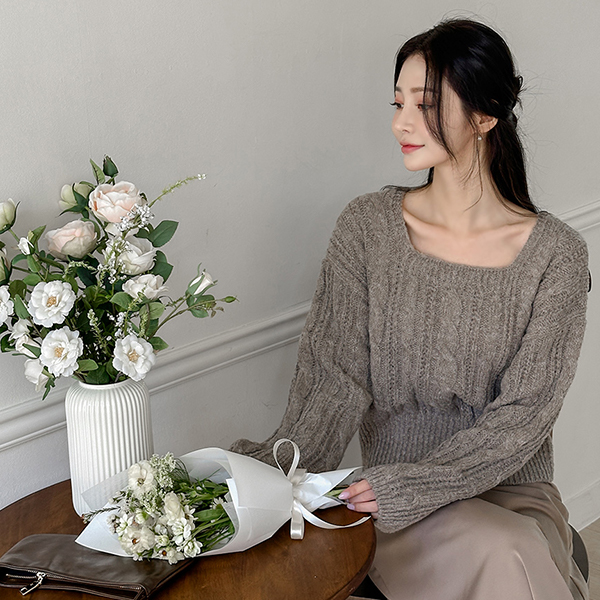 分厚い デーリー ケーブル スクエアネック ニット