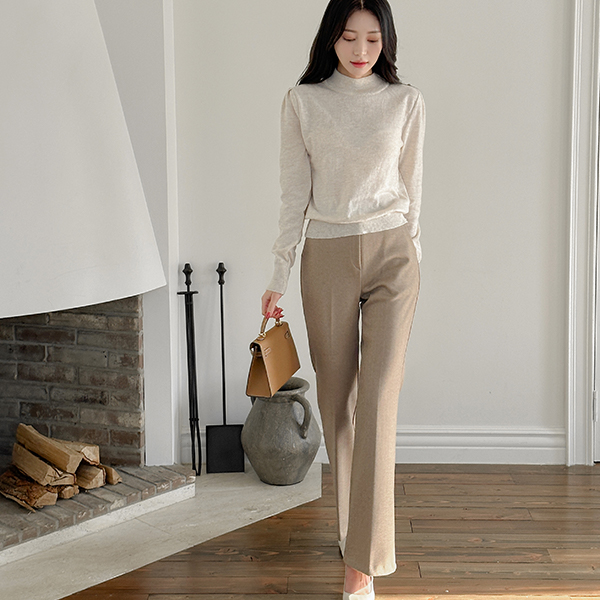 細かく美しい 弾力 ピンタック バンディング ブーツカット パンツ (起毛裏地)