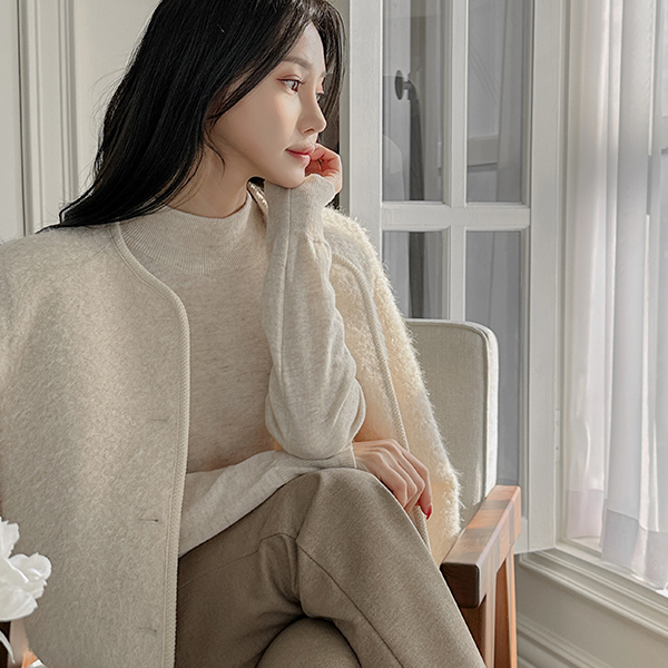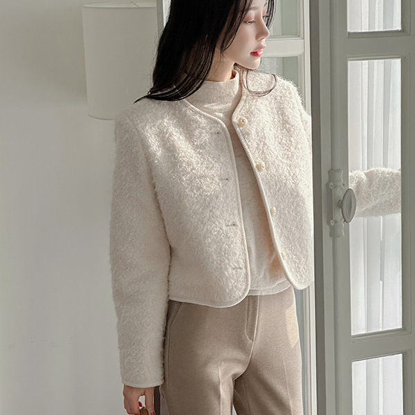 ふわふわ タッチ ラウンドネック ウール ジャケット (キルティング裏地)