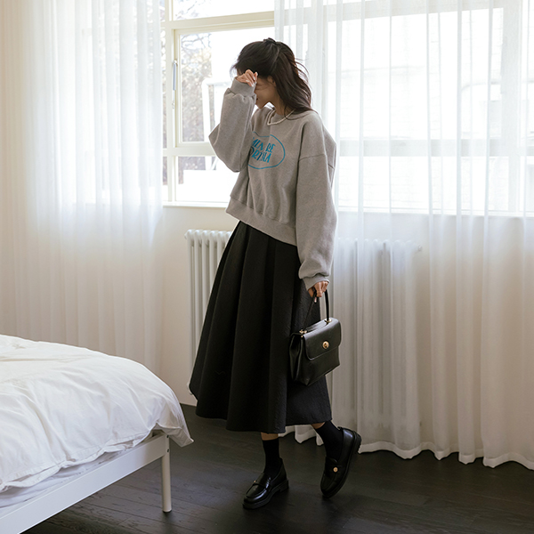 刺繍 レタリング ぽかぽかした 裏起毛 クロップド MTM