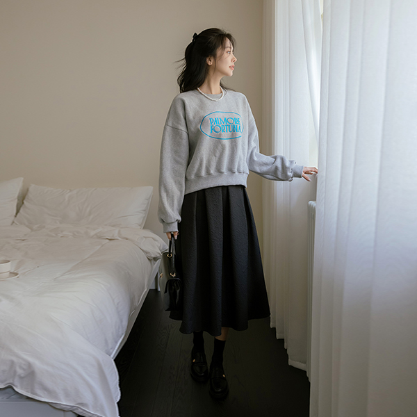 刺繍 レタリング ぽかぽかした 裏起毛 クロップド MTM