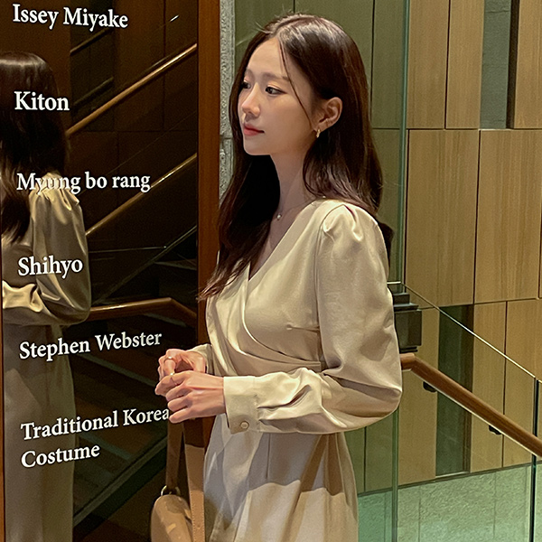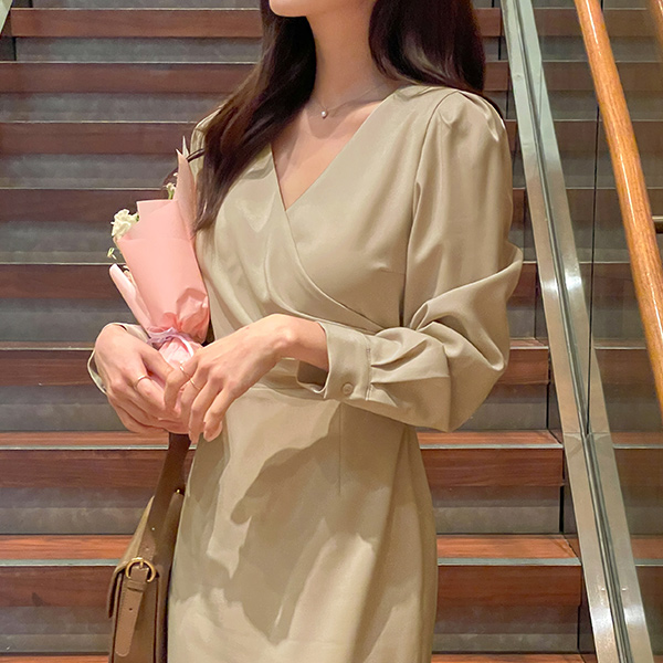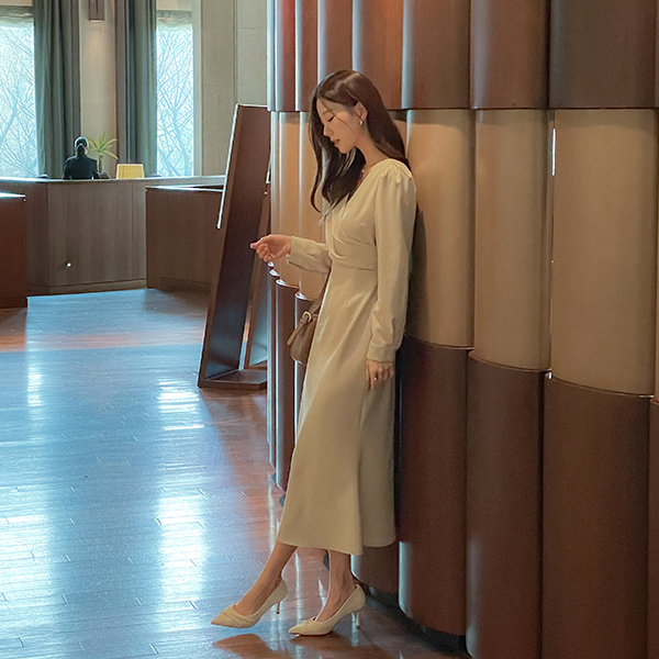 Mine シャーリング ブイネック バックリボン 弾力 マーメイド ワンピース