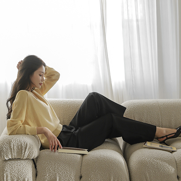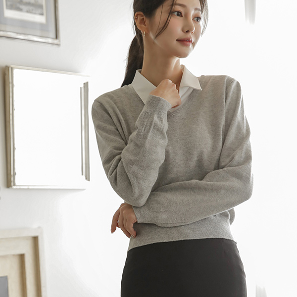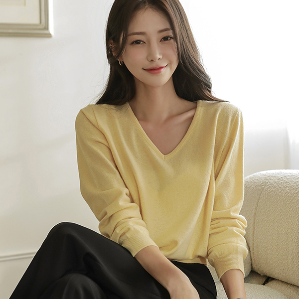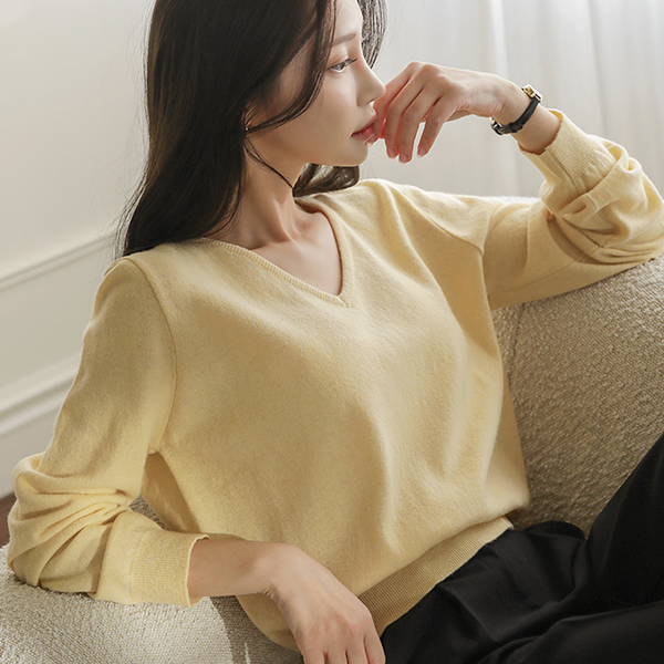 ベーシック ウール カシミア ブイネック ニット