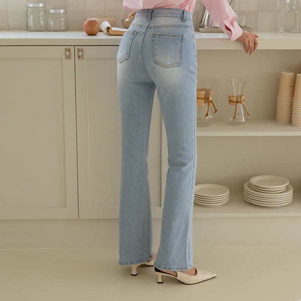 ODE スリム ブーツカット 弾力 デニム パンツ