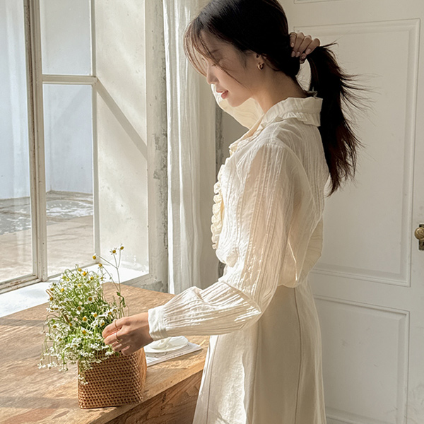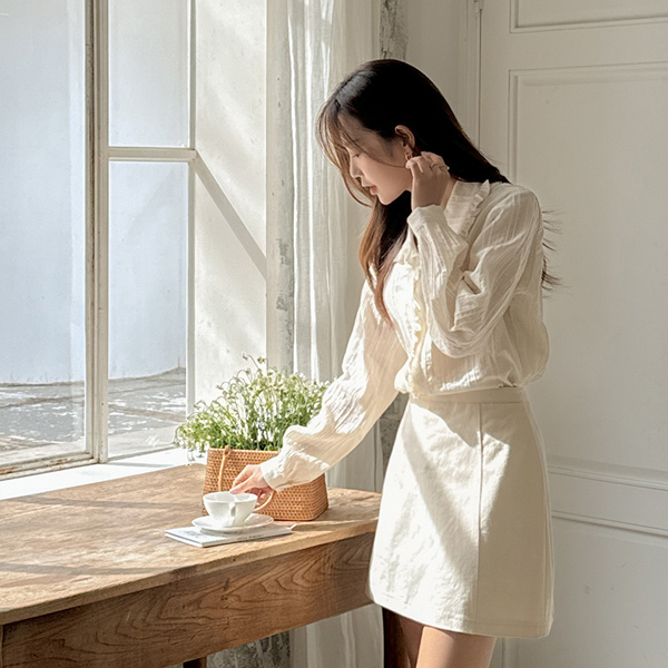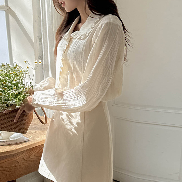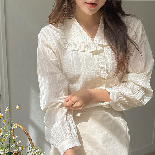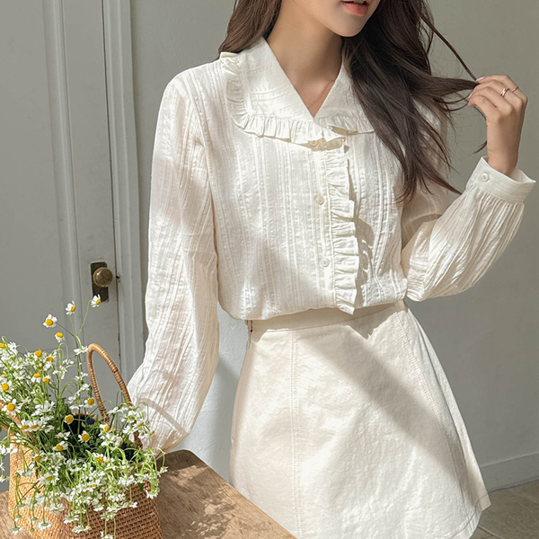 ロマンチック フリル カラーネック コットン ブラウス