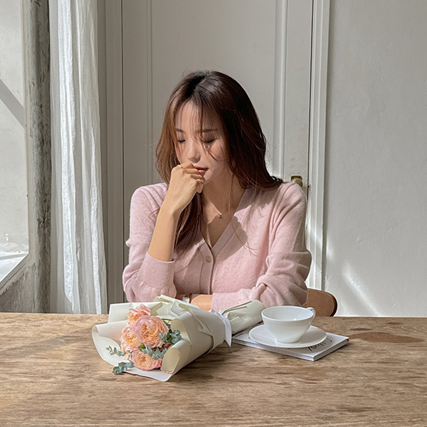ロマンチック カラー ポイント カシミア 基本 カーディガン