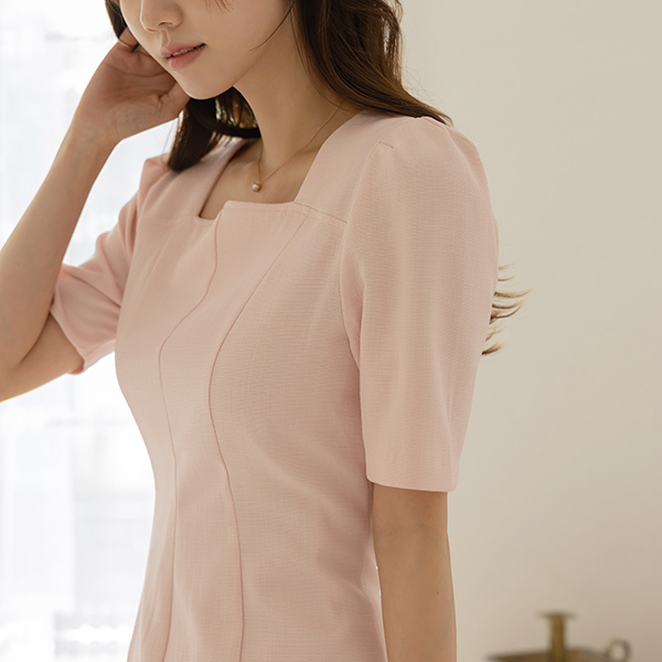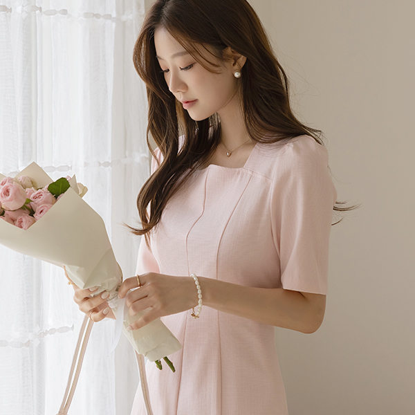 ロマンチック カラー サマー ツイード スクエアネック ワンピース