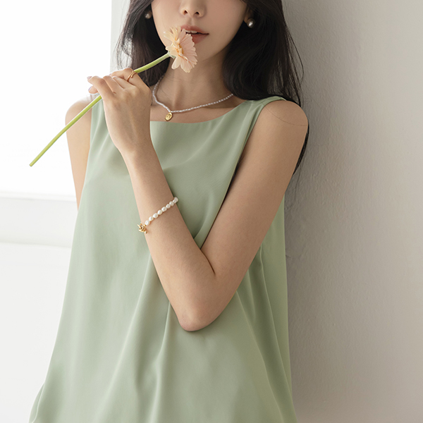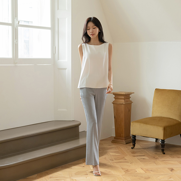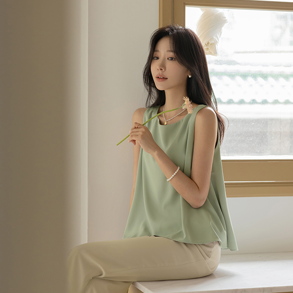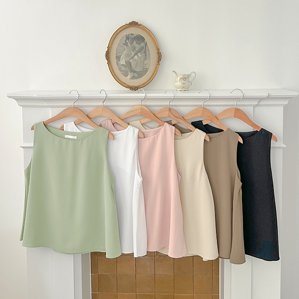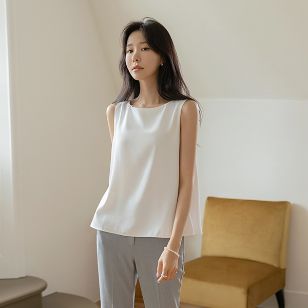 ほっそりした ネック 훌 基本 袖なし ブラウス