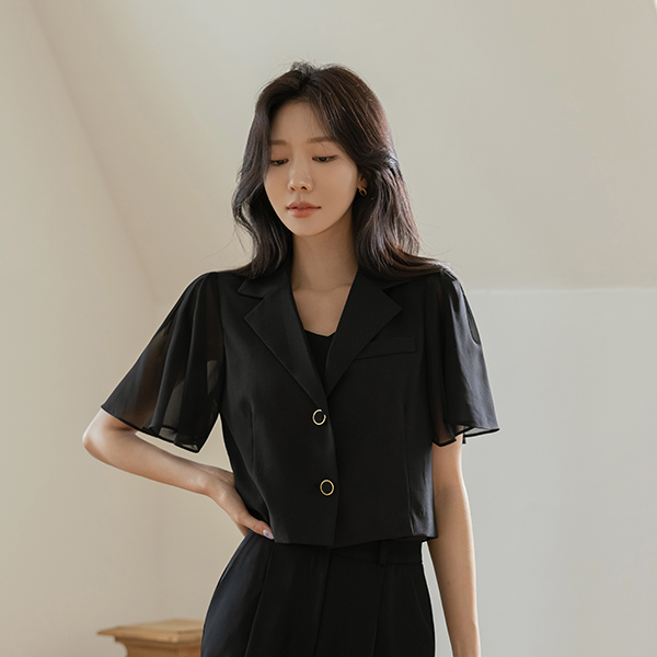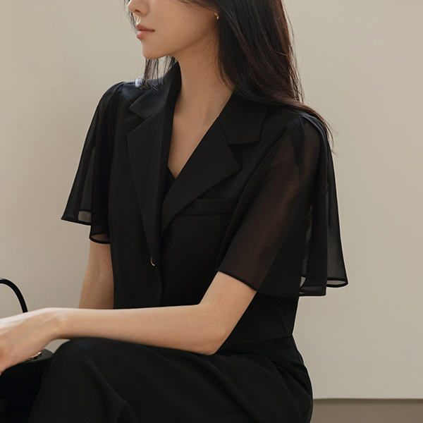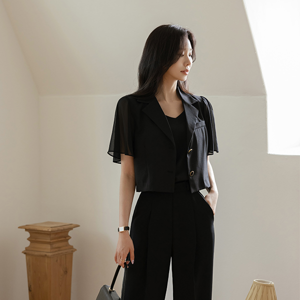 ソフト シフォン 袖 クロップド ジャケット