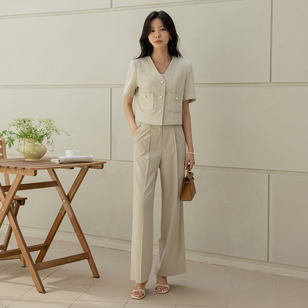 Olive ツイード クロップド 半そで ジャケット