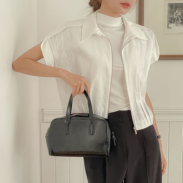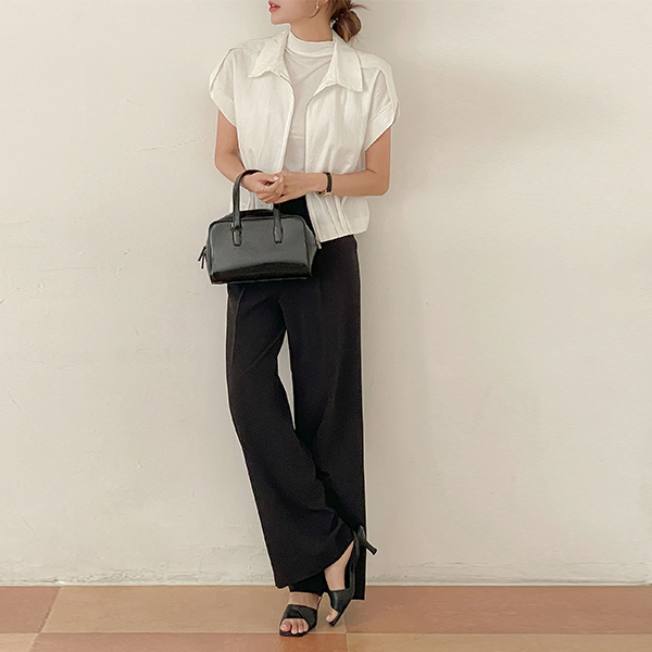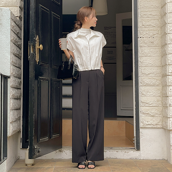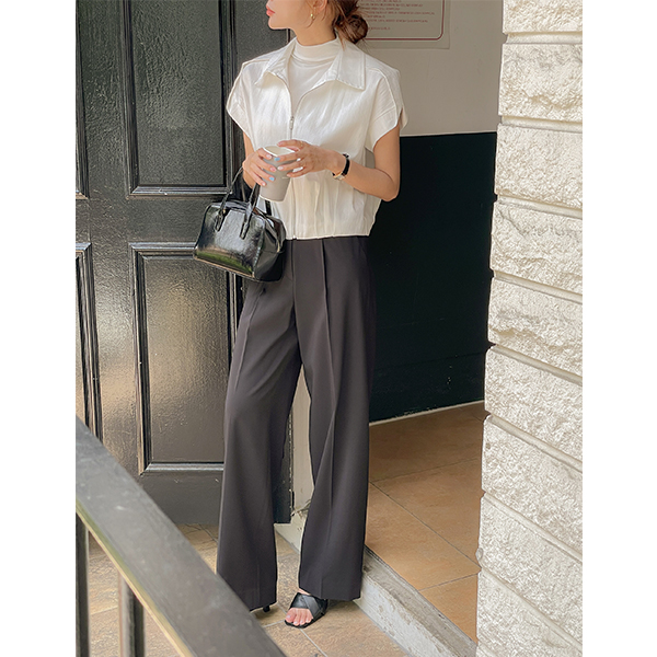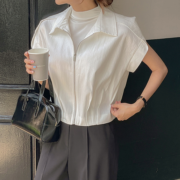 Lush カラーネック ピンタック ポイント キャップップ ジャンパ