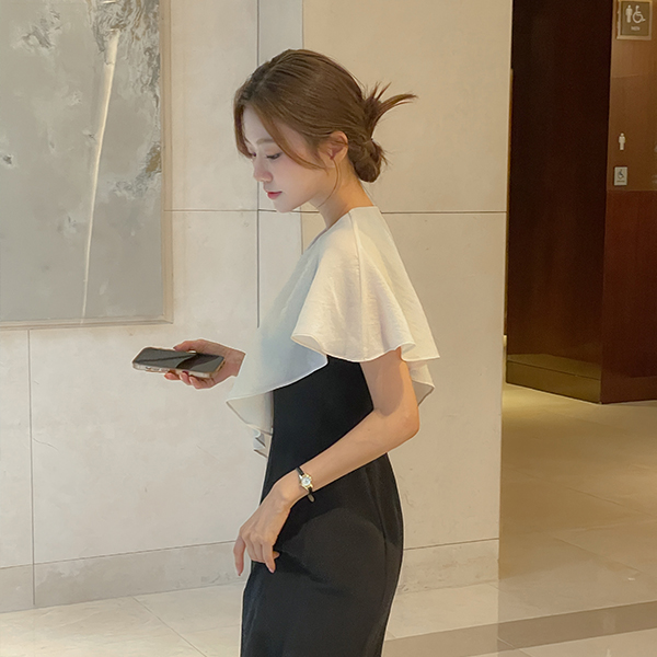 Aria フリル 袖なし ワンピース