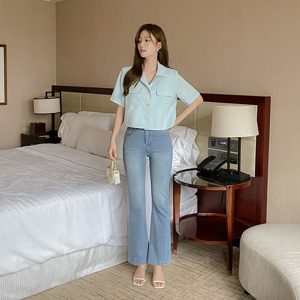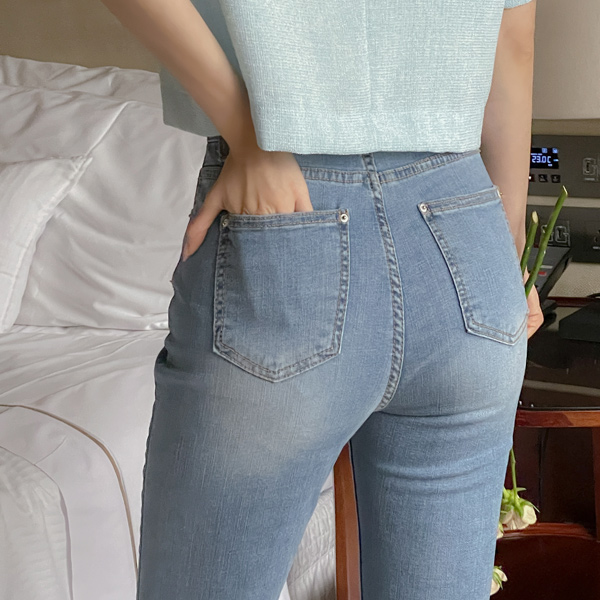 細かく美しい サマー 隠れた バンディング ブーツカット デニム パンツ