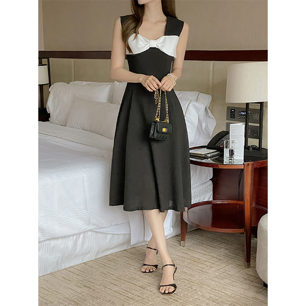 リボン ツイード 袖なし ワンピース