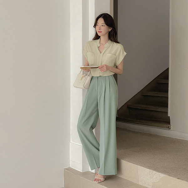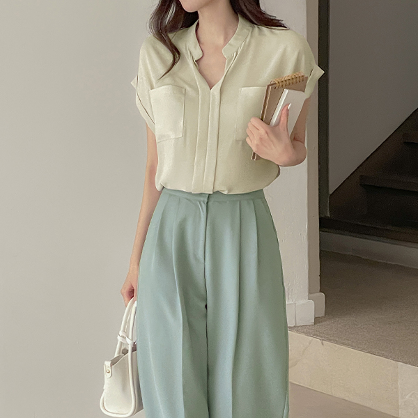 ダブル ポケット ソフト ルーズフィット キャップップ ブラウス
