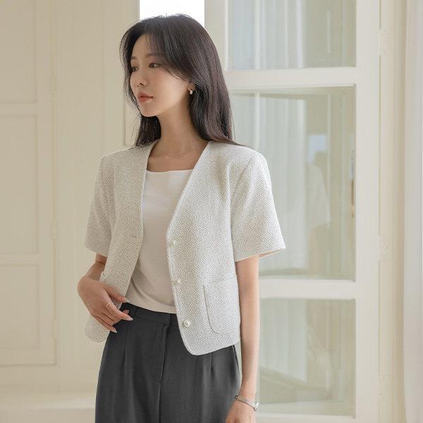 바우드 サマー ツイード 半そで ジャケット
