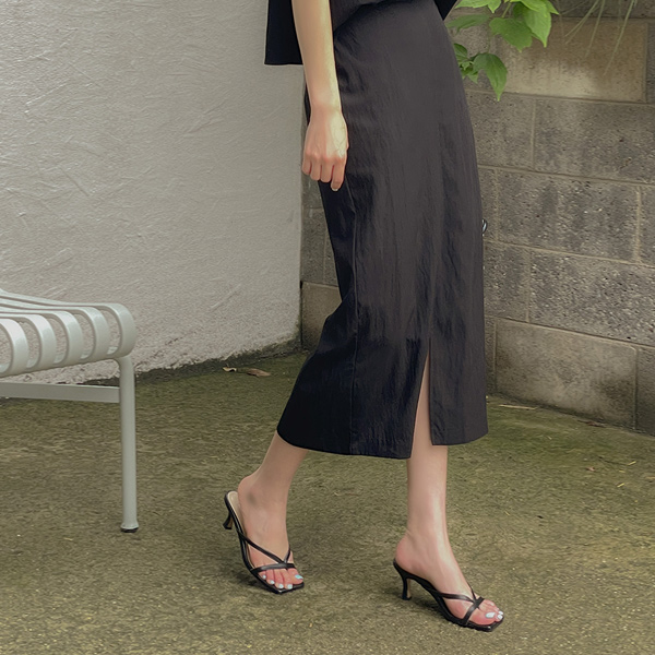 シンプル スクエアトー サンダル ヒール