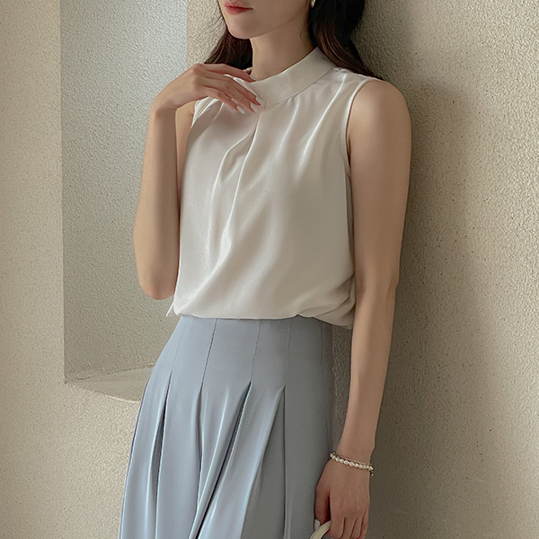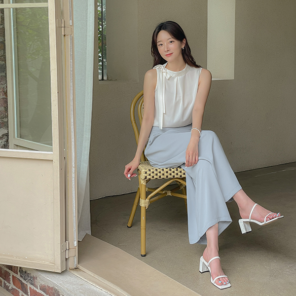 サイド リボン·ネックライン 袖なし ブラウス
