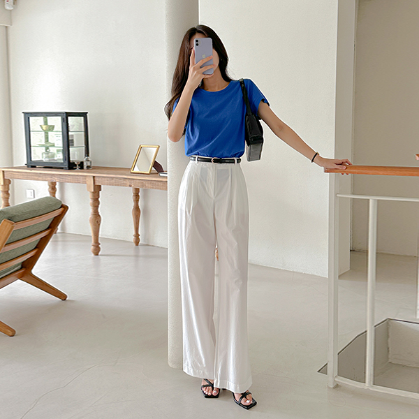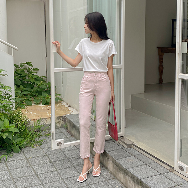 サマー ストレート パステル コットン 弾力 パンツ