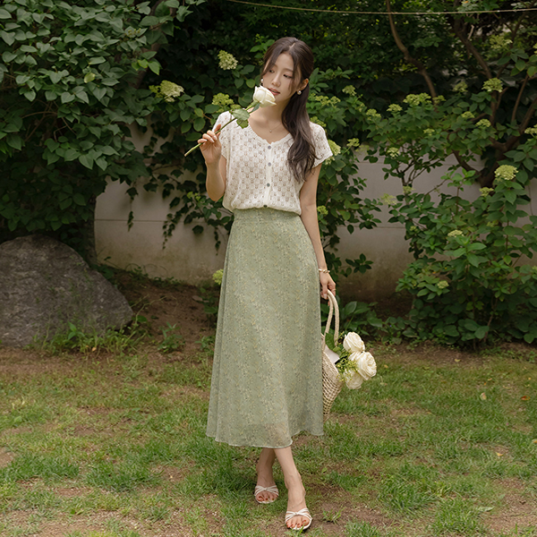 ソフト シフォン 花柄 パタン Aライン スカート