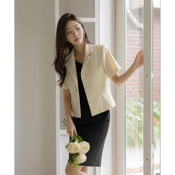 멘토 真珠 ボタン サマー ツイード ジャケット