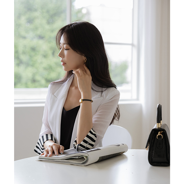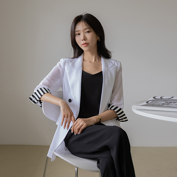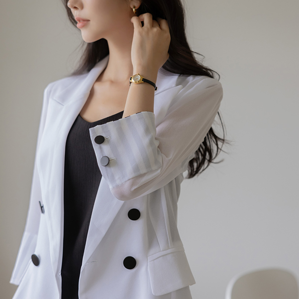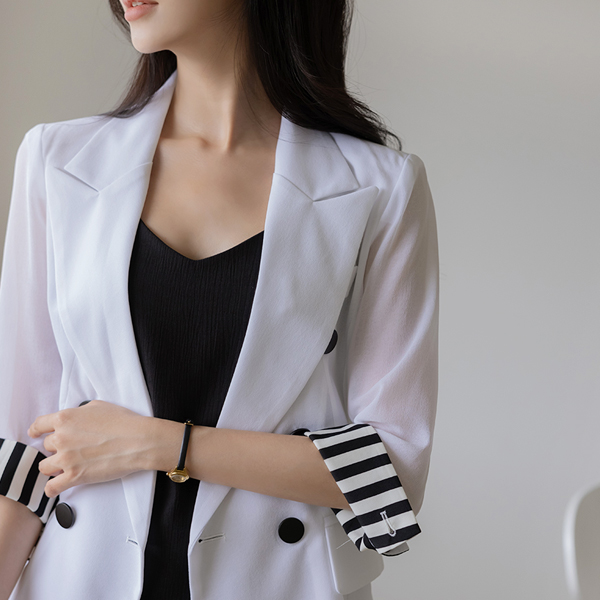 シフォン 配色 袖 ダブル ジャケット