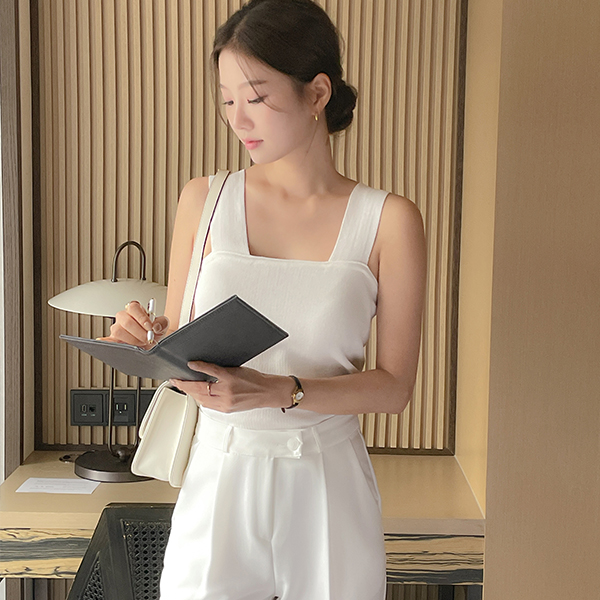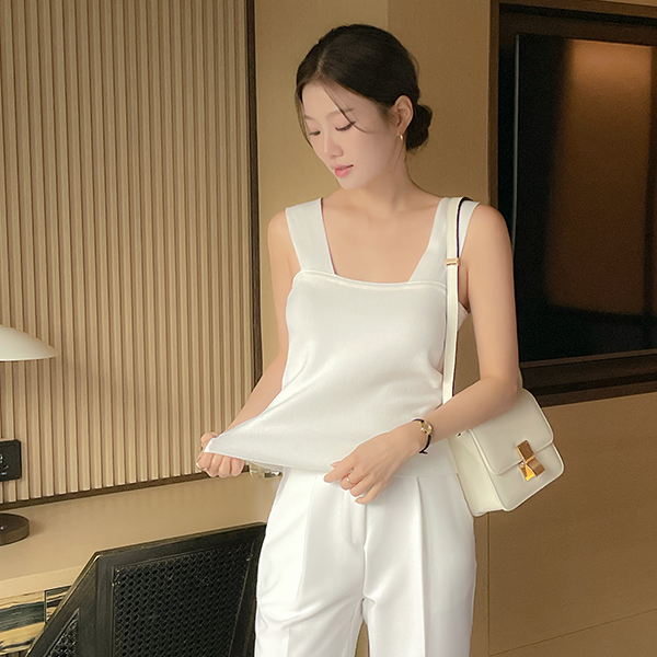 ほっそりした サマー スクエアネック 袖なし ニット