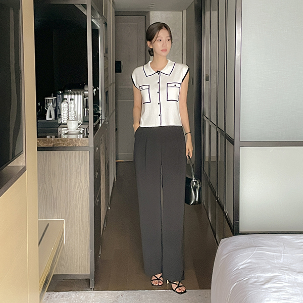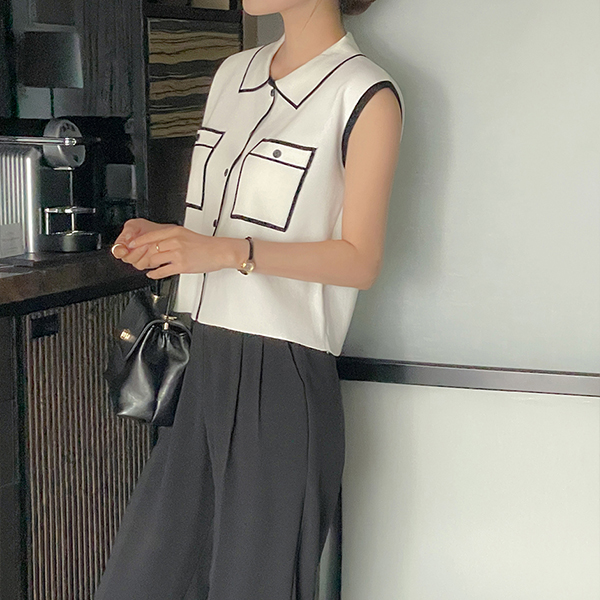 ポケット 配色 袖なし ニット
