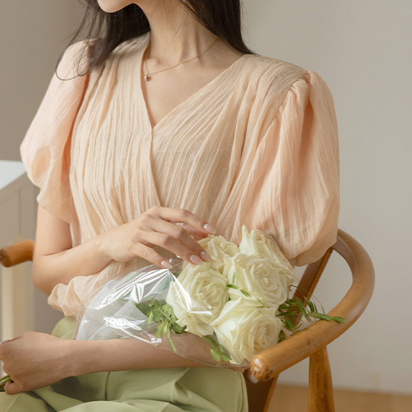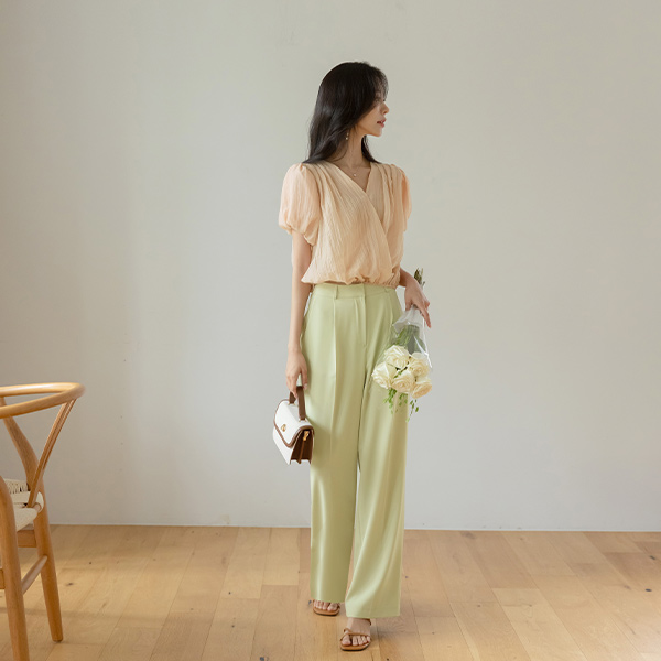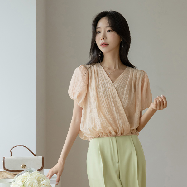 シャーリング ラップ スタイル 裾上 バンディング タイ ブラウス