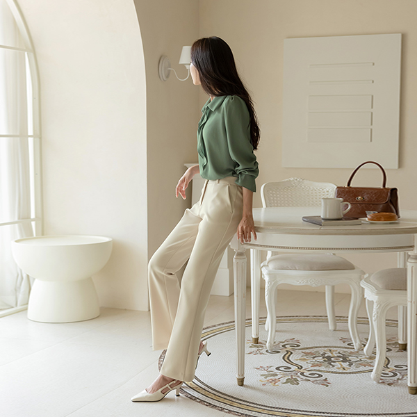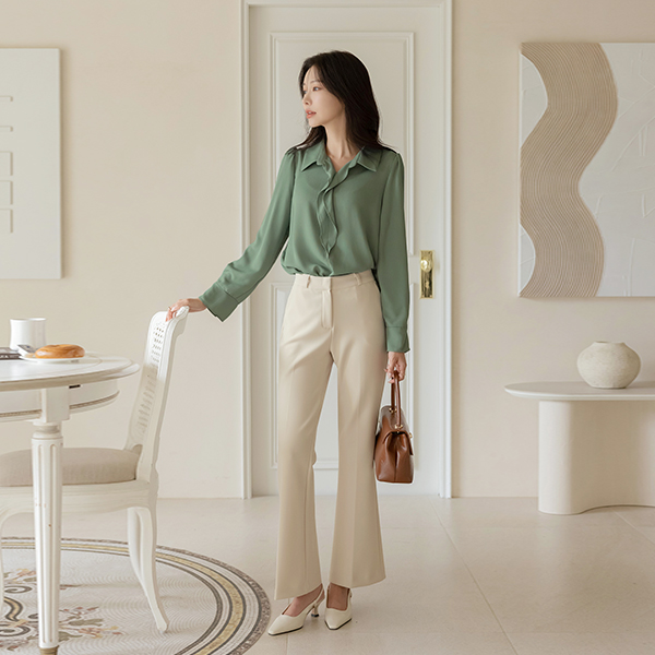 カラー フリル 훌 ブラウス