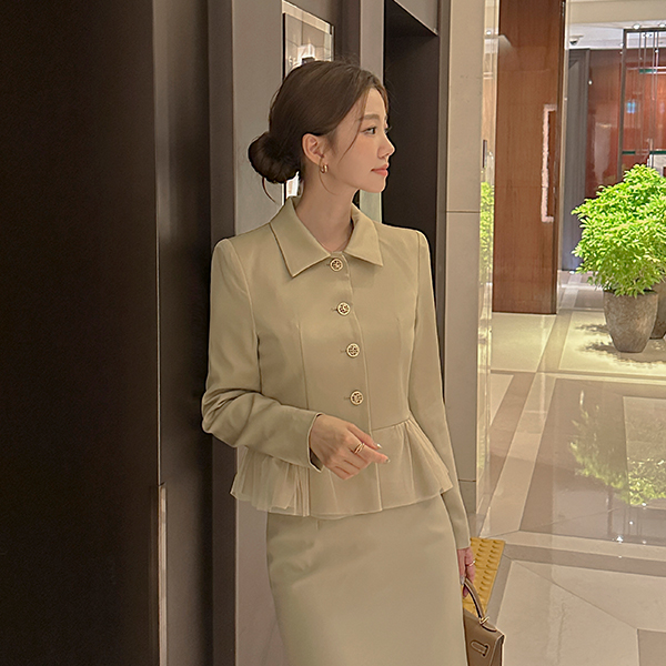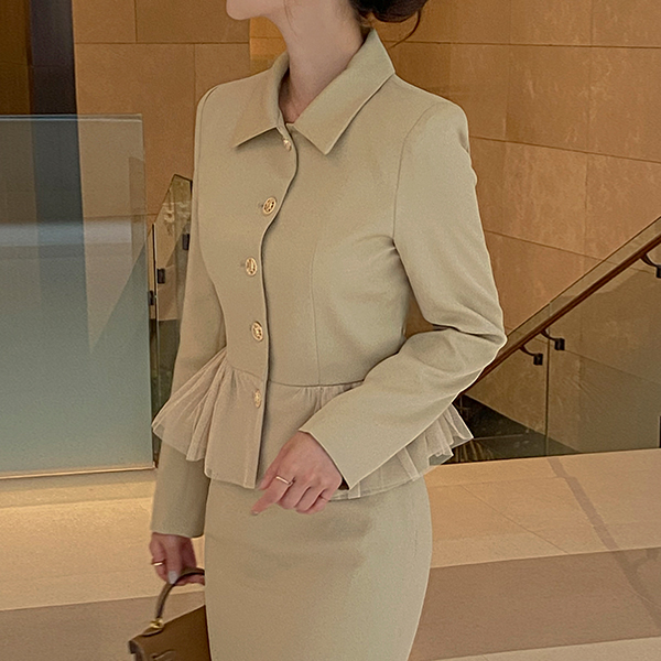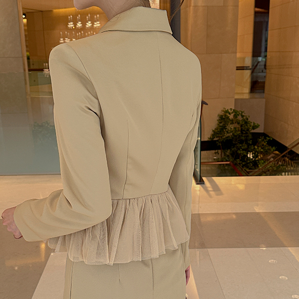 린다 シャーリング ダブル ペプラム Set-up ジャケット