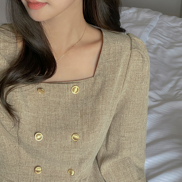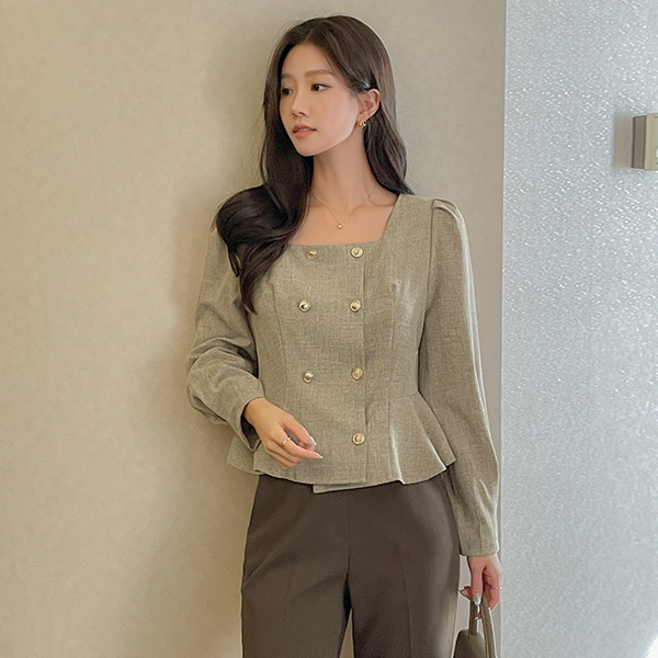 엔느 ゴールド ボタン ペプラム ブラウス