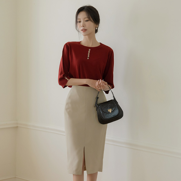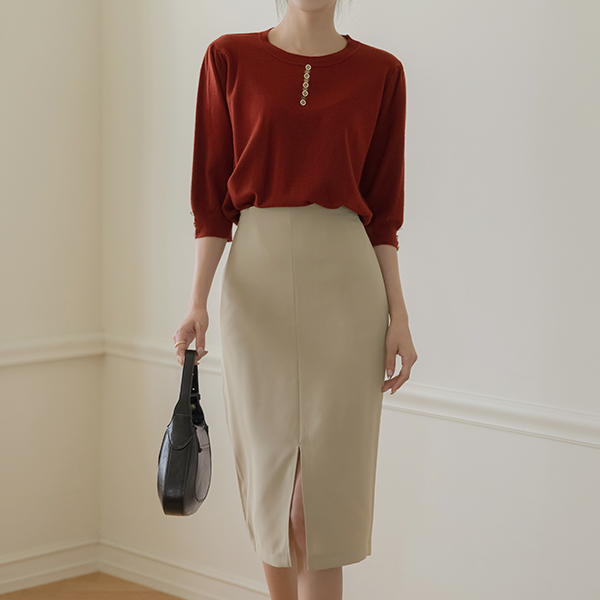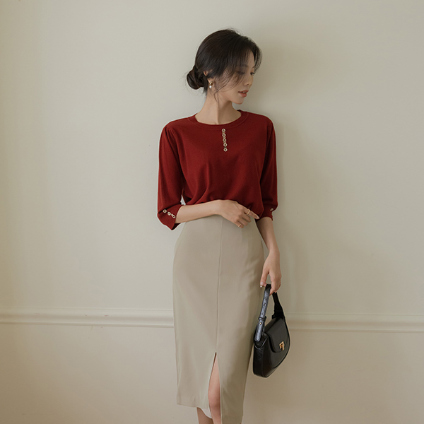 宝石 ボタン 切開 ラウンドネック 秋 カラー ニット