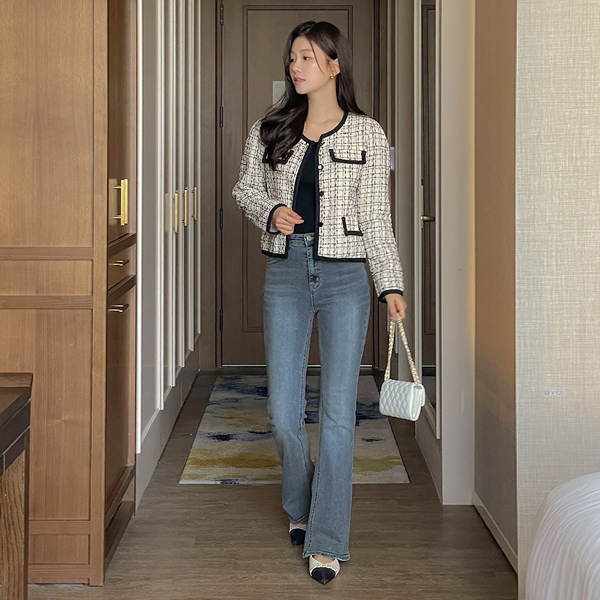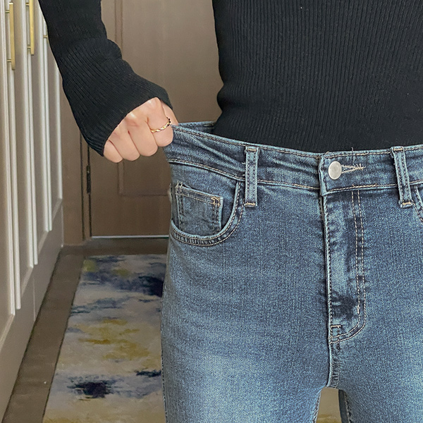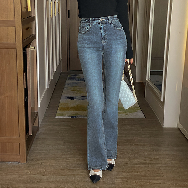 細かく美しい 弾力 秋 ブーツカット バンディング デニム パンツ
