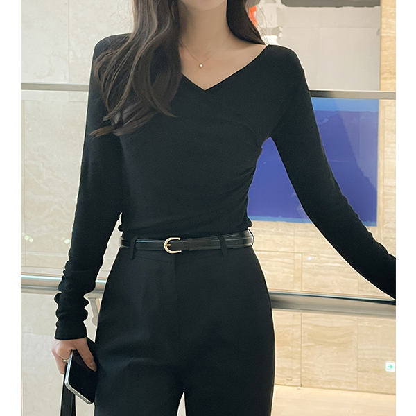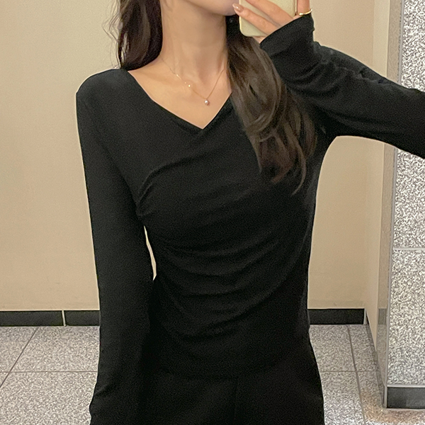 サイド シャーリング ラップスタイル 弾力 ティーシャツ