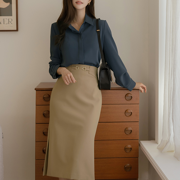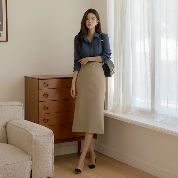 ゴールド バックル 양 スリット 弾力 Hライン スカート
