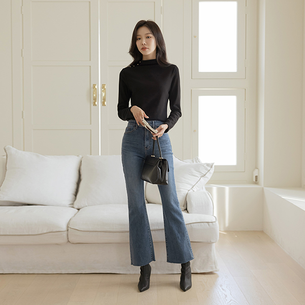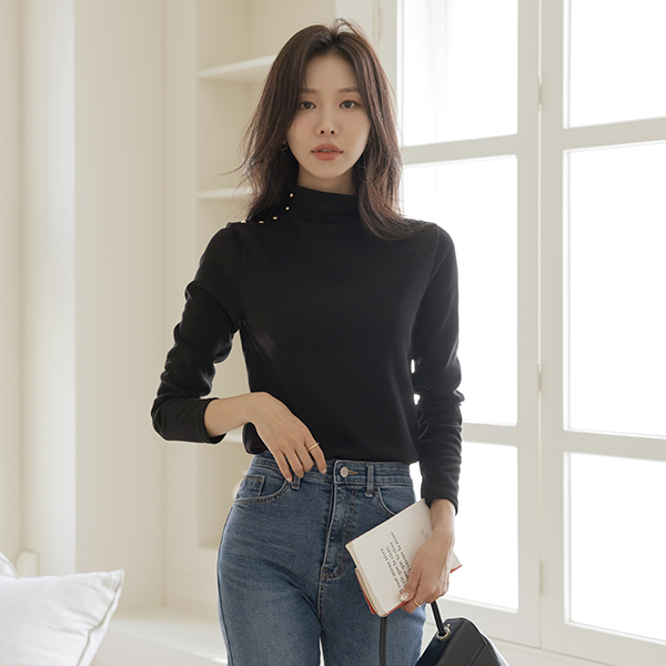 하울 セミハイネック ゴールド ボタン ティーシャツ