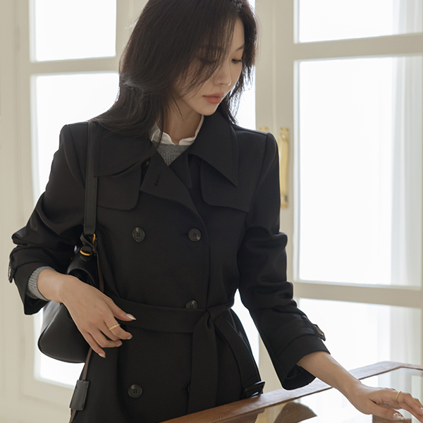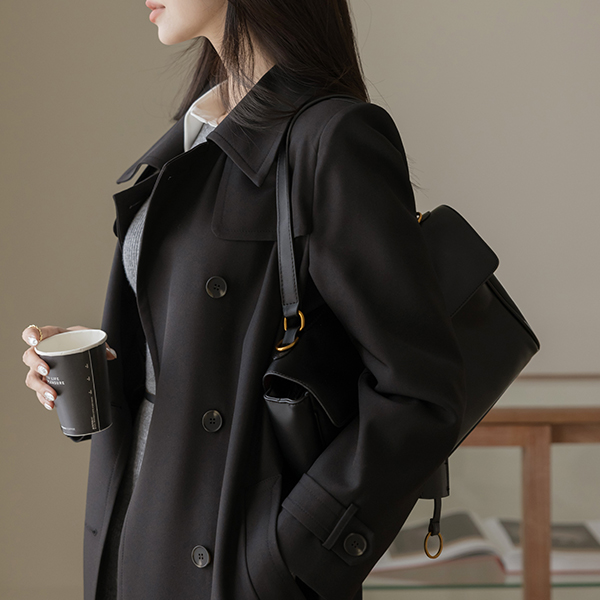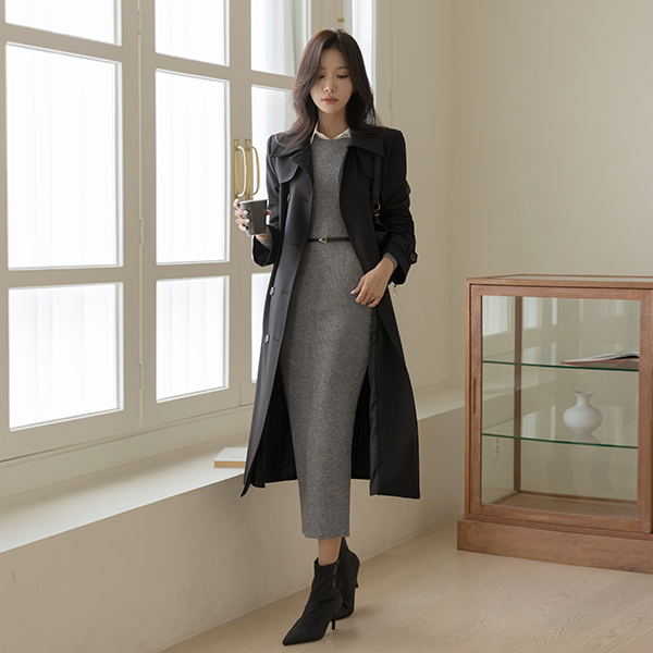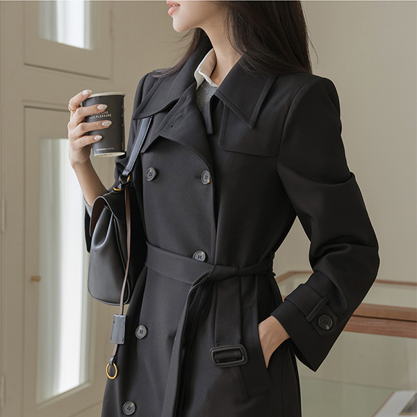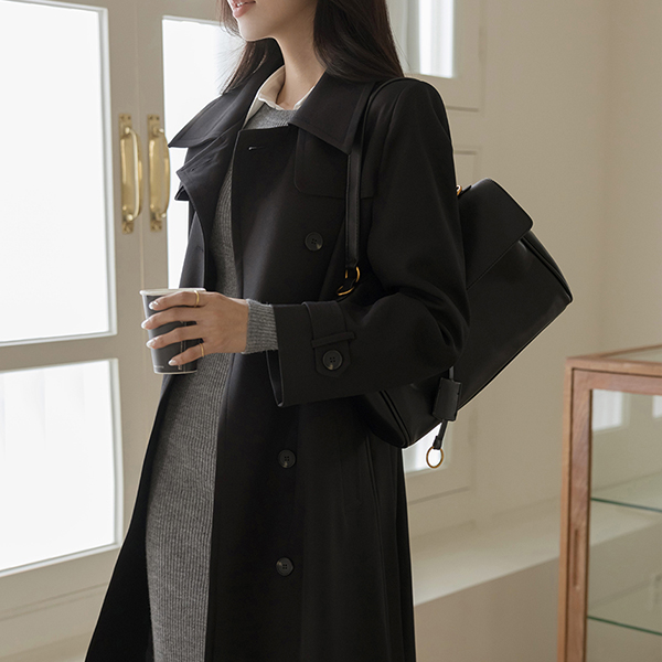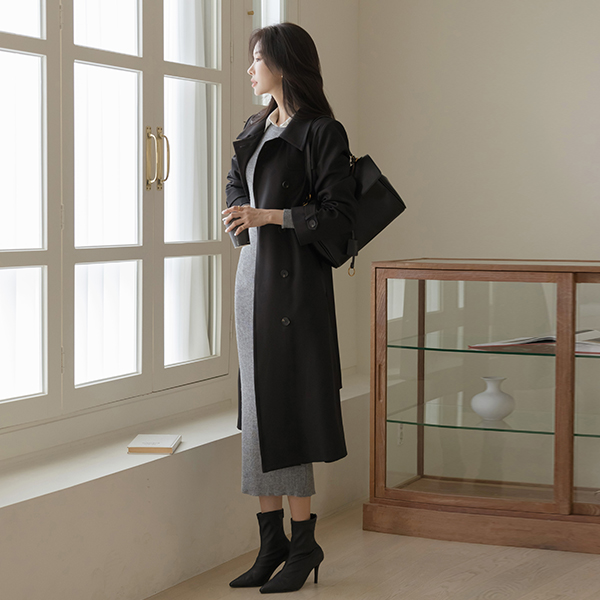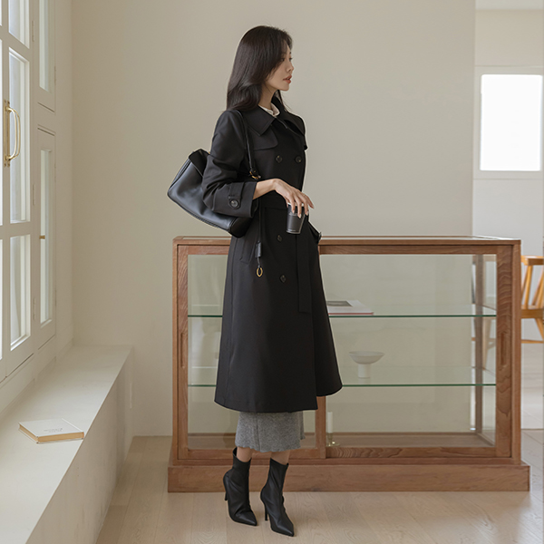 秋 模造 ロング トレンチ コート