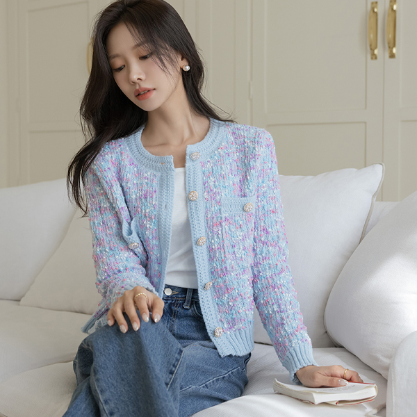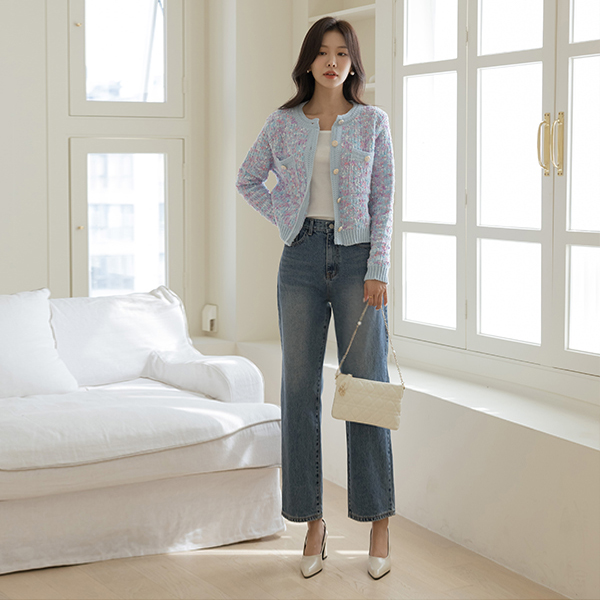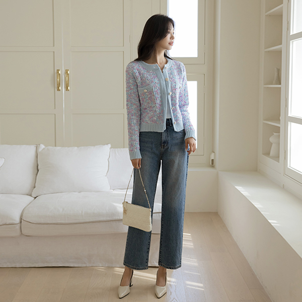 キャンデー ミックス カラー 花柄 ボタン カーディガン