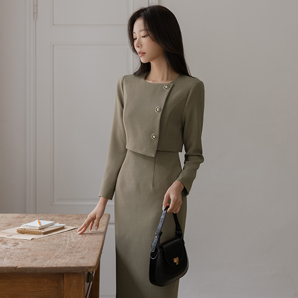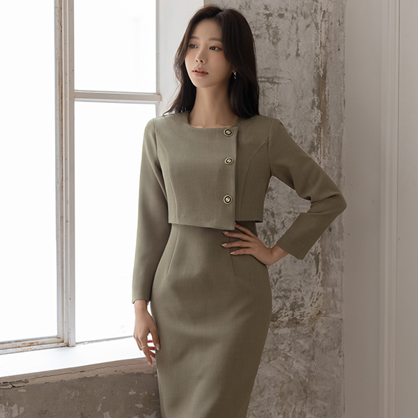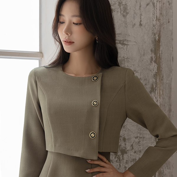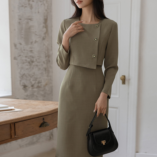 3つ ボタン ツーピース スタイル 弾力 ワンピース