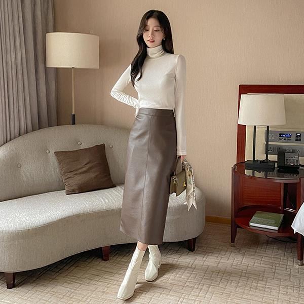 バックスリット Eco レザー Hライン スカート