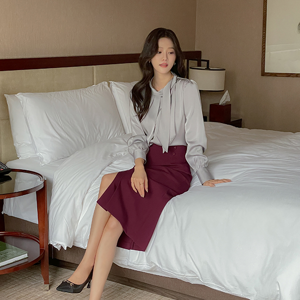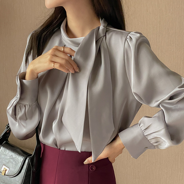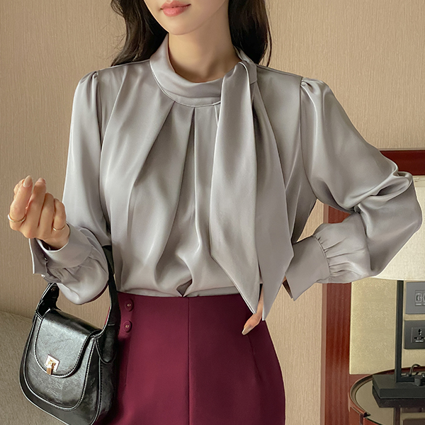 グロッシー スカーフ ピンタック ブラウス
