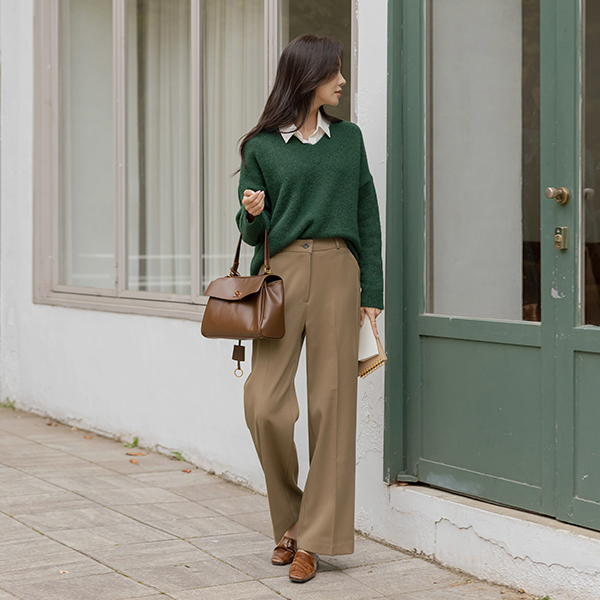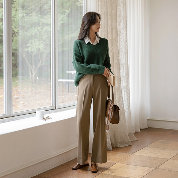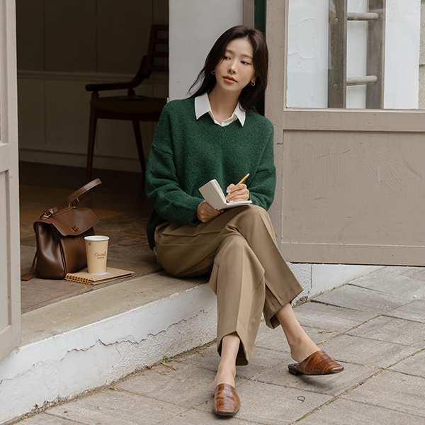 ぽかぽかした 리사이클 Vネック ウール ニット