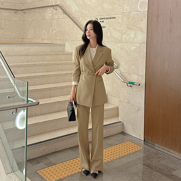 르미엘 隠れた ボタン ベルト Set-up ジャケット
