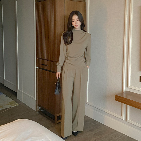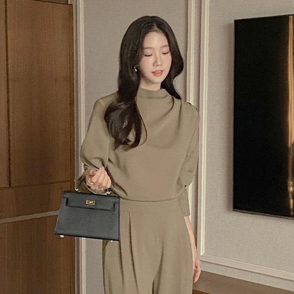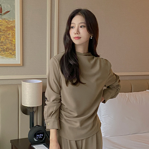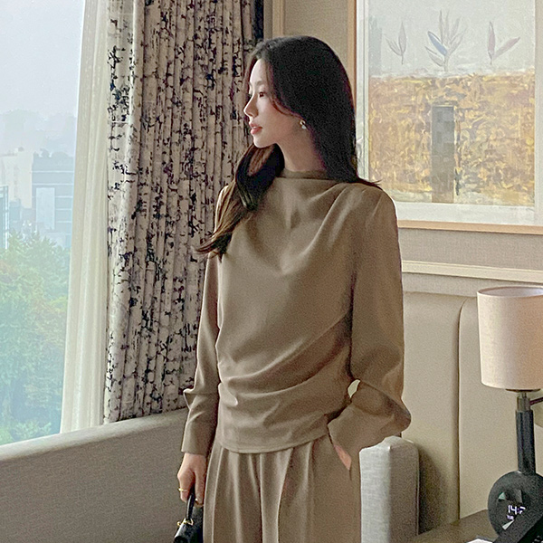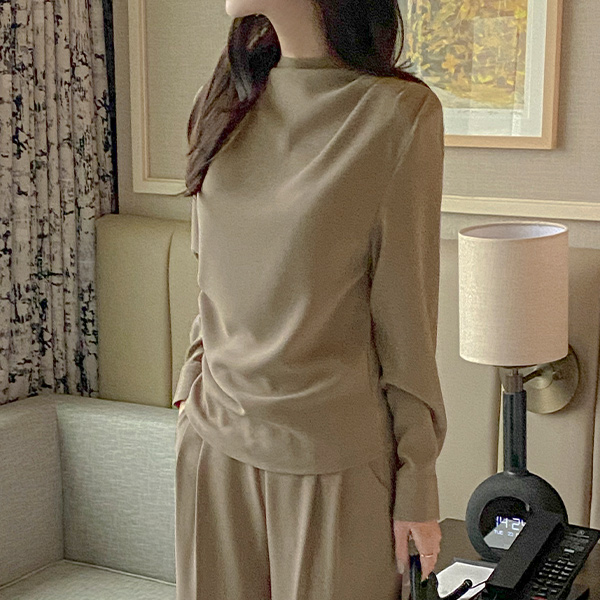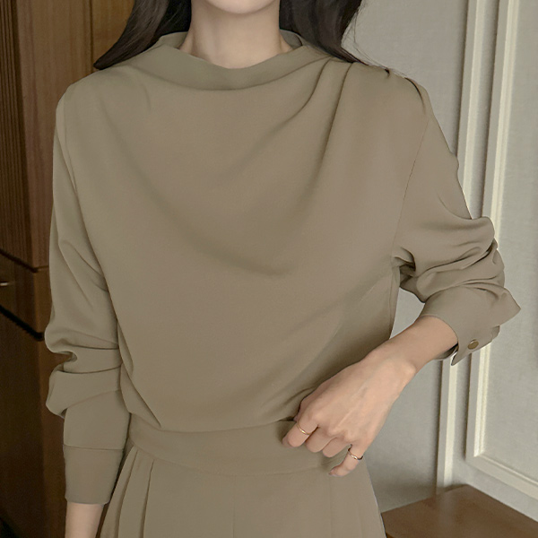 エレガンス セミハイネック シャーリング ブラウス