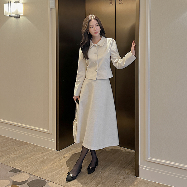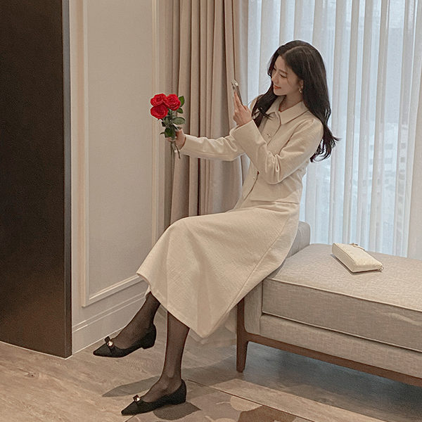ロマンス キュービック ボタン ウール ツイード Set-up ジャケット